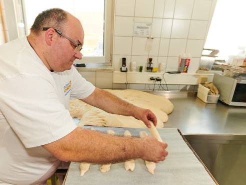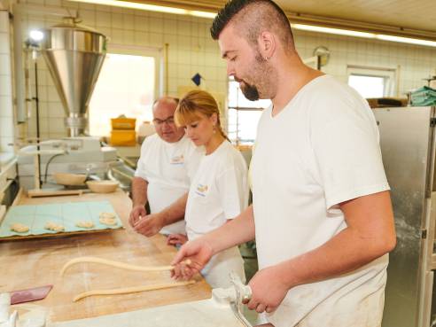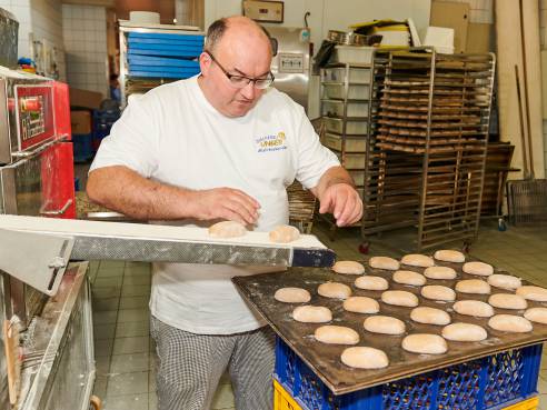 Unser Herzstück ist unsere Backstube mit erfahrenen Bäckern. Hier backen wir Tag für Tag leckere Brote, herzhaftes Kleingebäck und süße Köstlichkeiten.